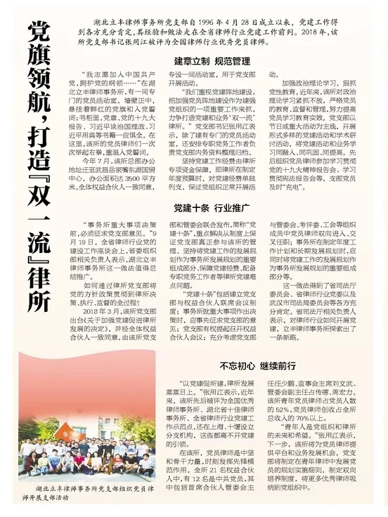 湖北日报专题报道《党旗领航,打造“双一流”律所》