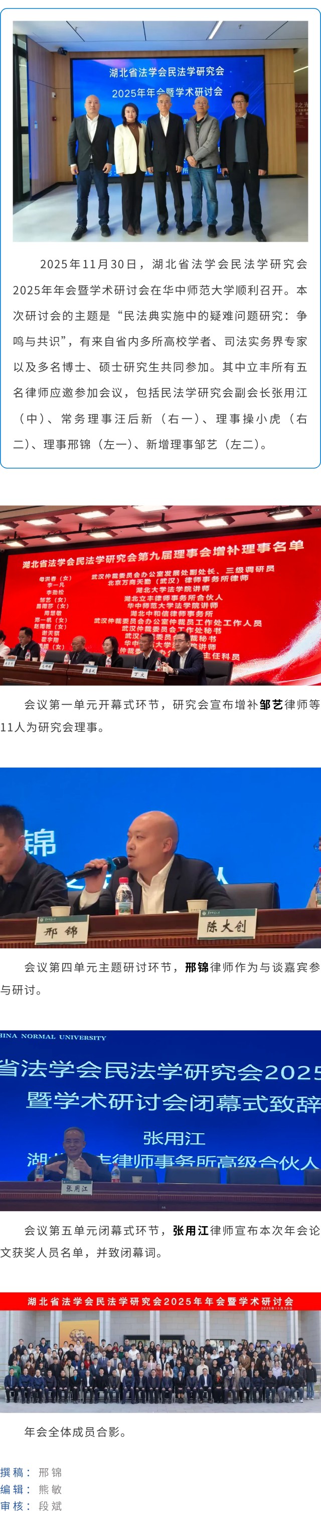 立丰所五名律师参加民法学研究会2025年年会,邹艺当选理事