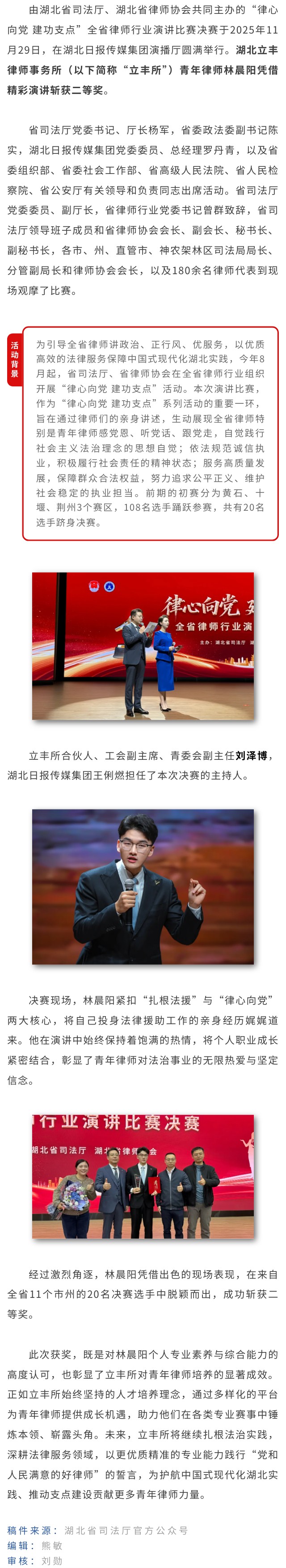 立丰所林晨阳在“律心向党 建功支点”全省律师行业演讲比赛决赛中斩获二等奖