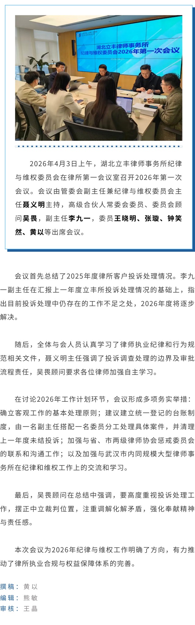 立丰所纪律与维权委员会召开2026年第一次会议