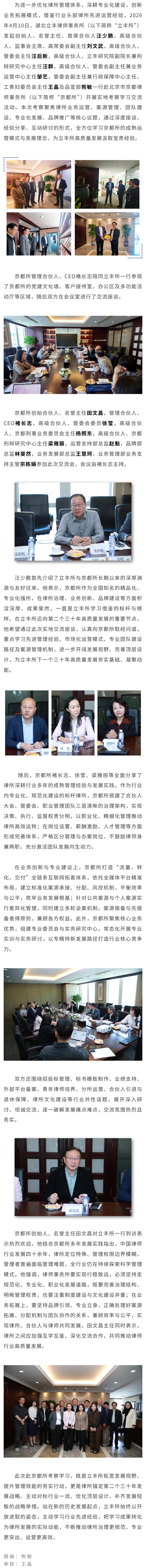 立丰所首席合伙人汪少鹏一行赴北京京都律师事务所考察交流